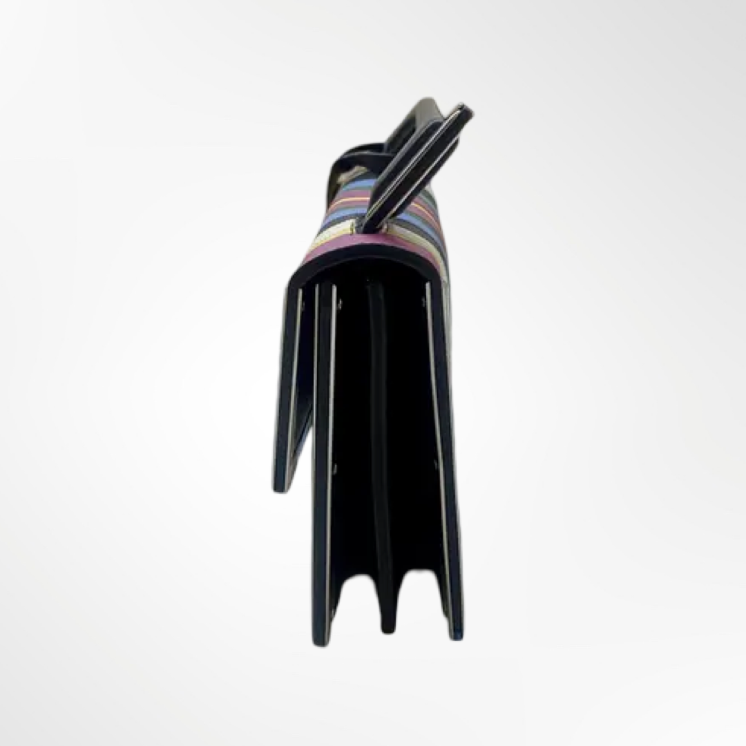 Trae dos correas una de cuero ajustable y otra metálica. puede sacarse la correa y usar como clutch