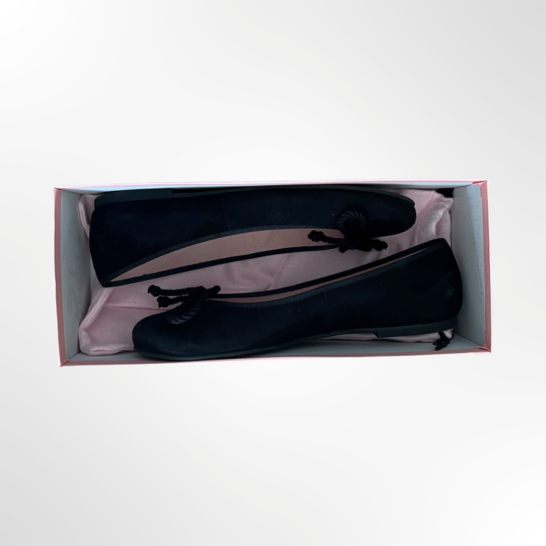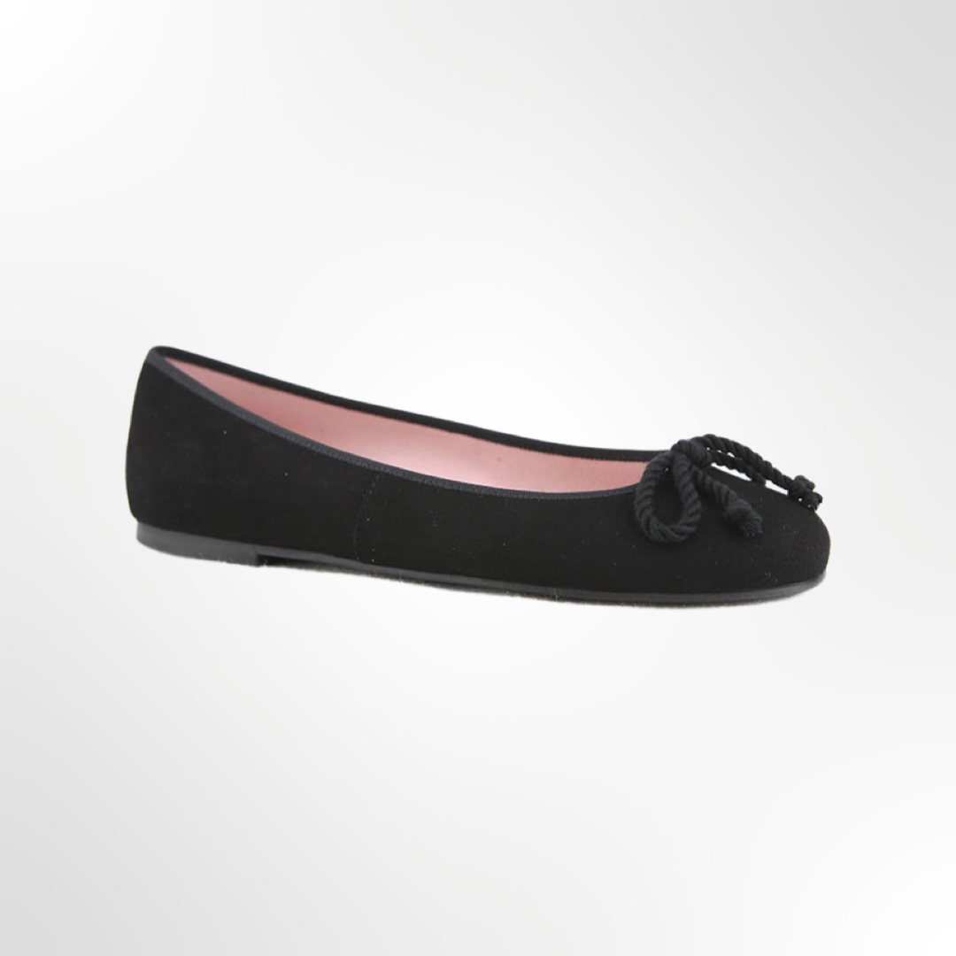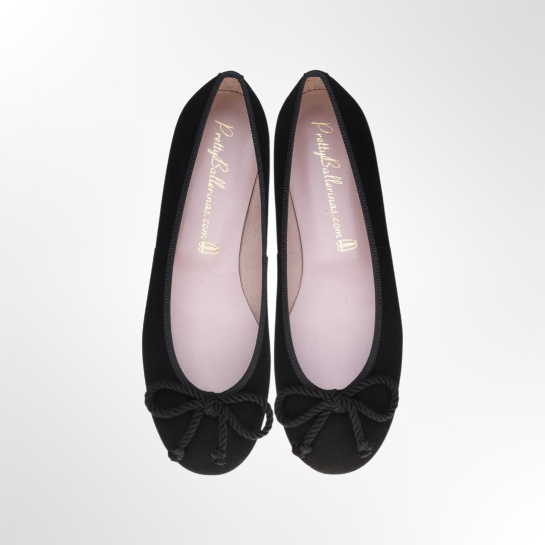 Bailarina de corte bajo en gamuza verde y lazo a tono. Suela interior de cuero y planta de goma antideslizante. Tiene 1 cm de altura.