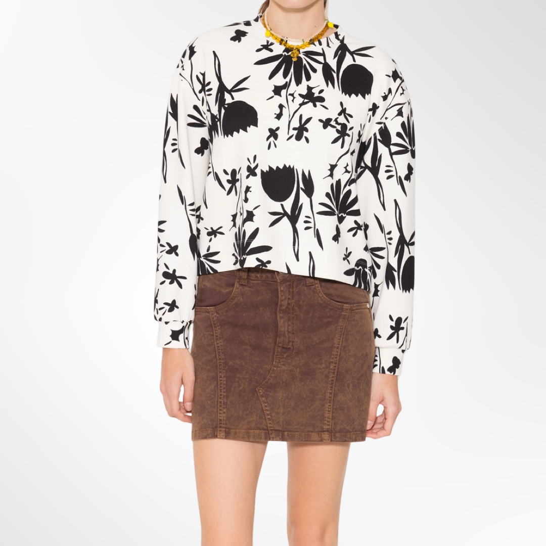 Buzo Cisnes confeccionado en jersey pesado estampado. Presenta escote redondo y detalle de bordado en una de las mangas. Su largo cae por debajo de la cintura.