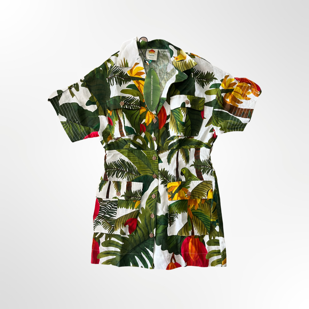 Vestido de lino abotonado por delante. Bolsillos amplios a los costados.