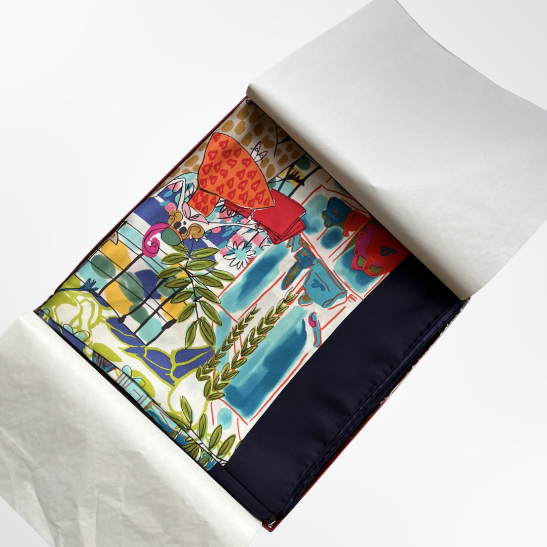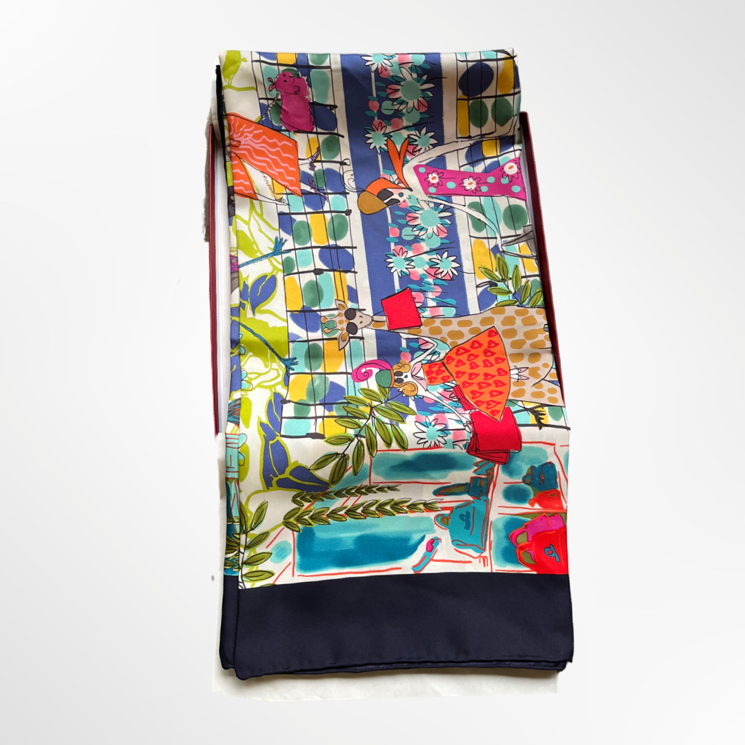 Pañuelo de 100% seda, cuadrado de 90x90 cm.