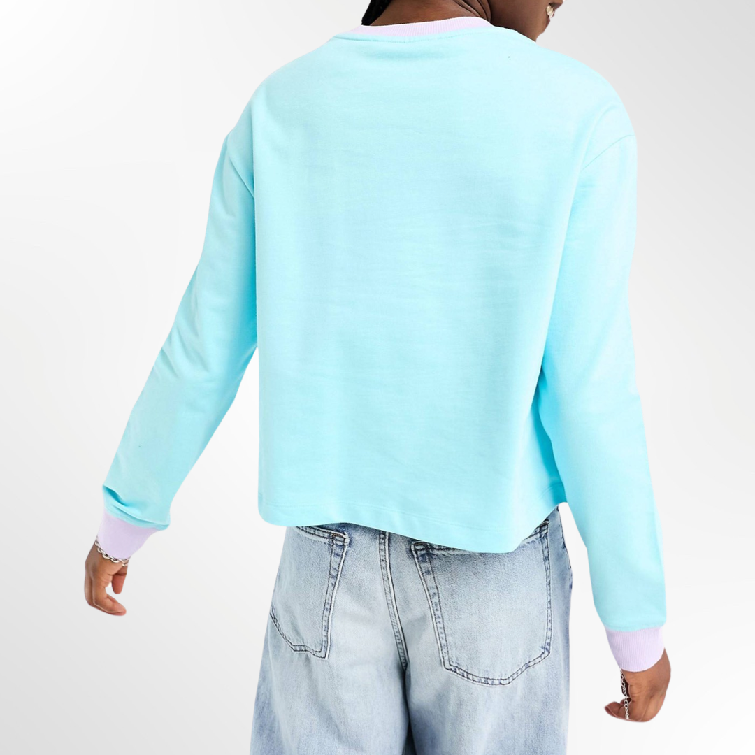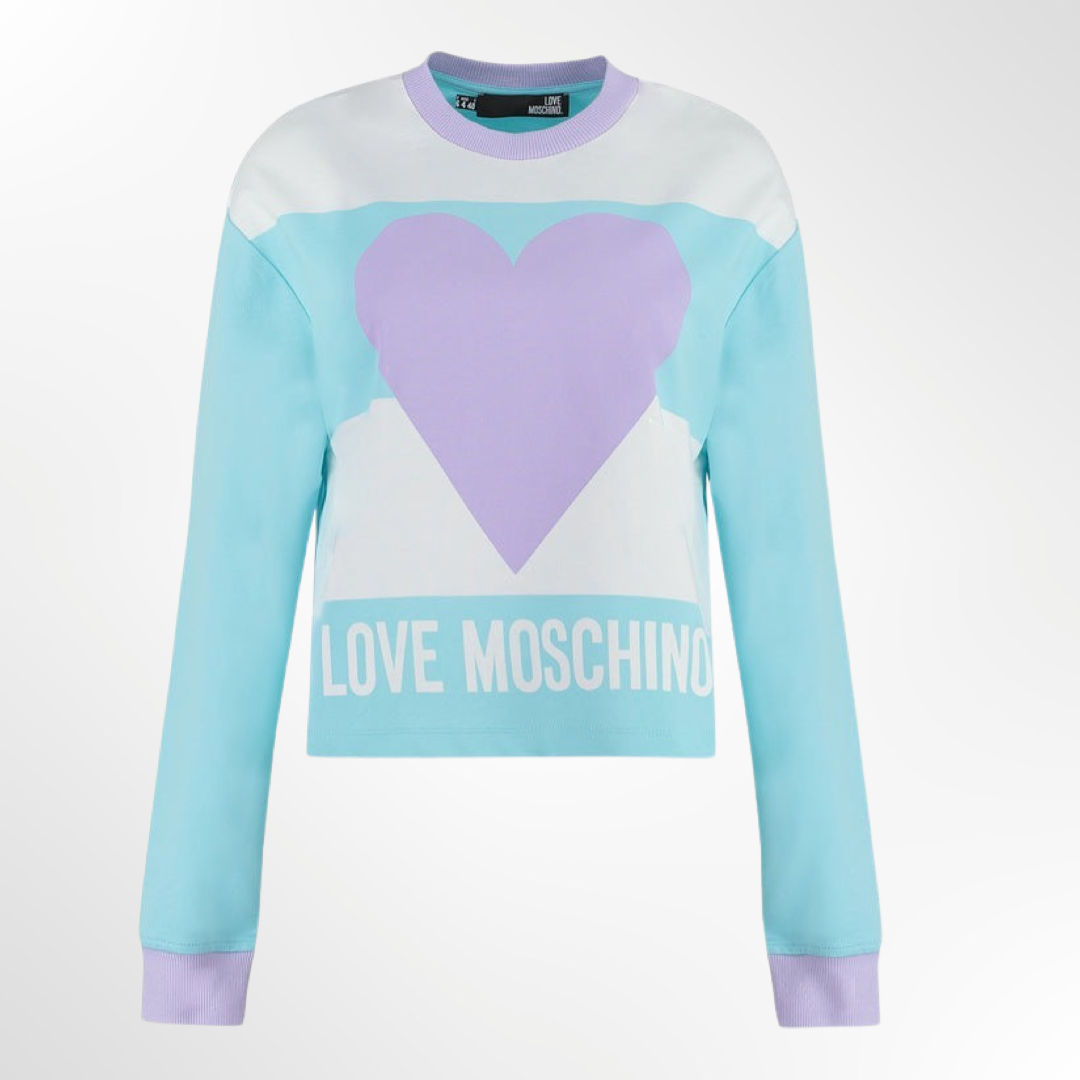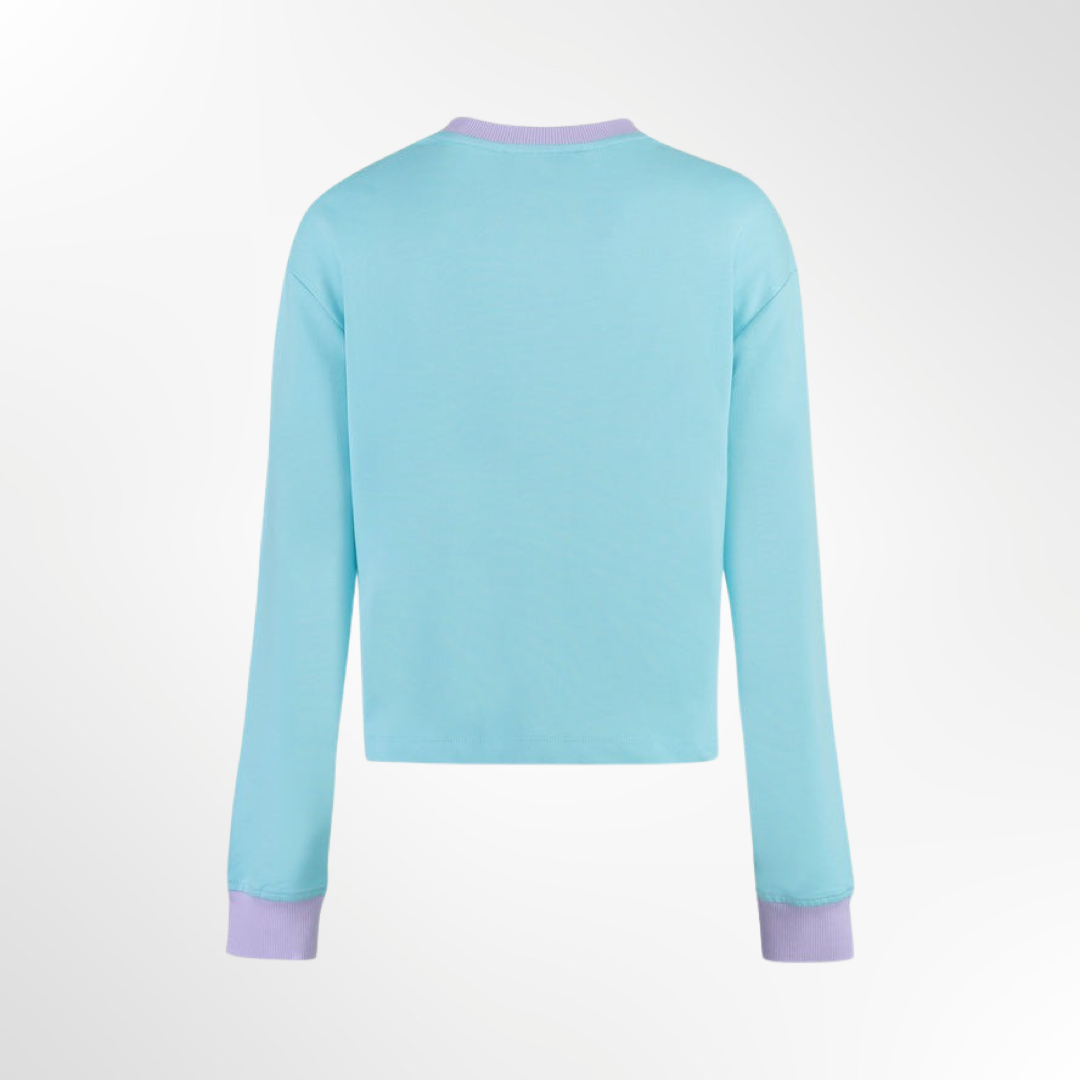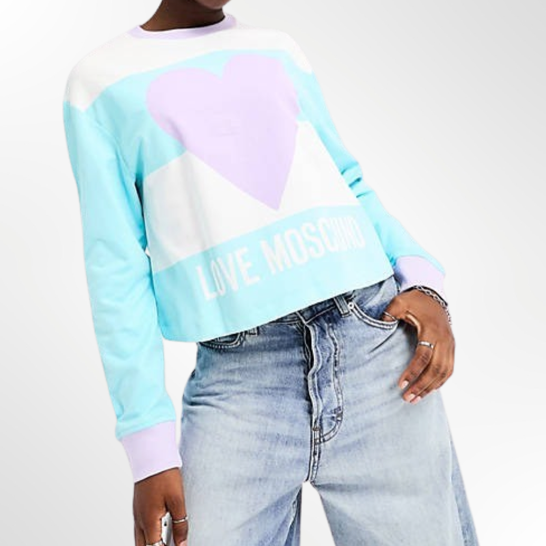 Polerón tricolor a rayas con corazón. Cuello redondo y mangas con puño.