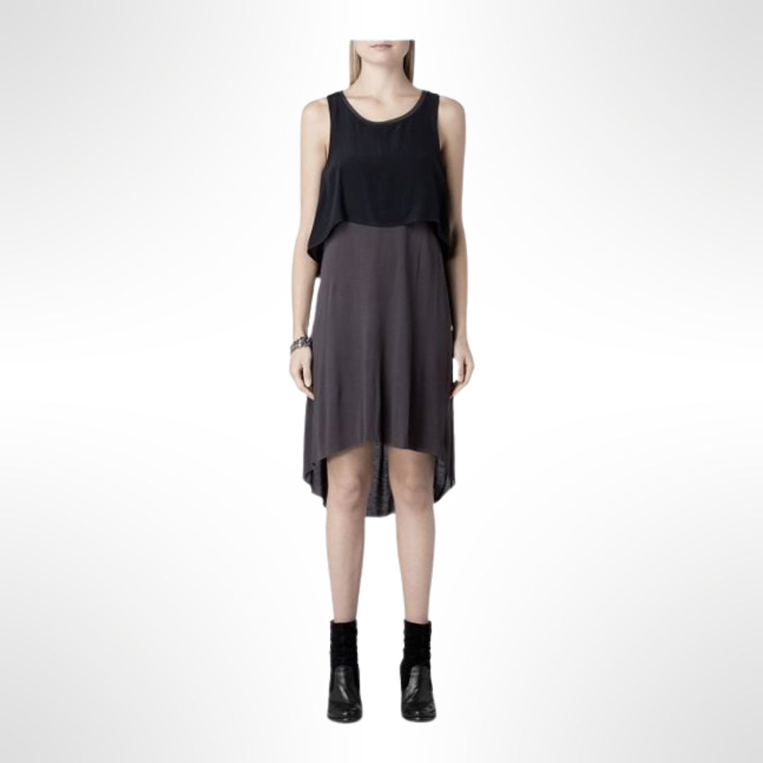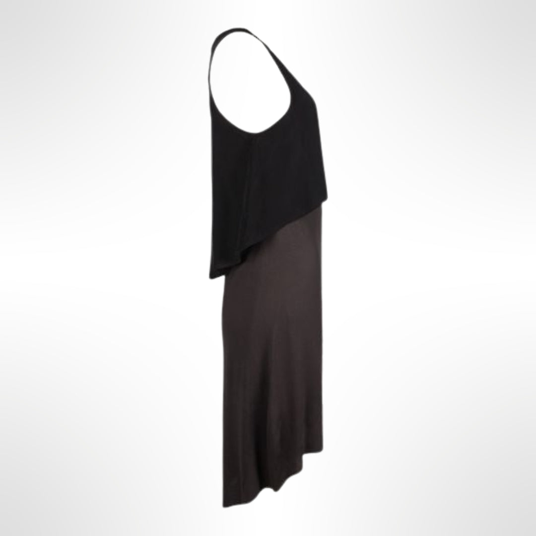 Vestido rubik es un estilo sutil de doble capa con un detalle superior de seda hecho de 100% jersey de viscosa. De estilo es holgado pero fiel a la talla.