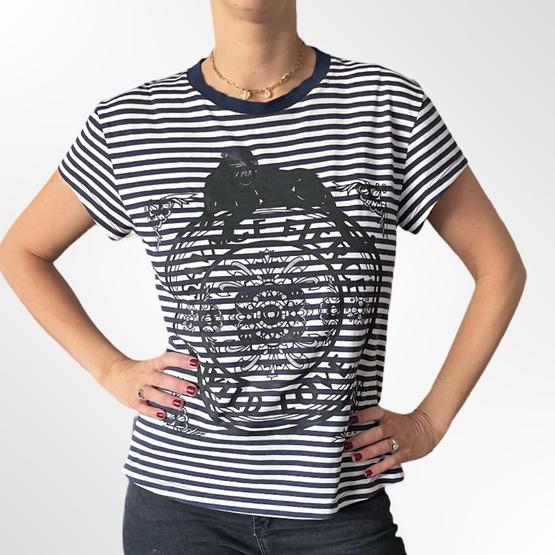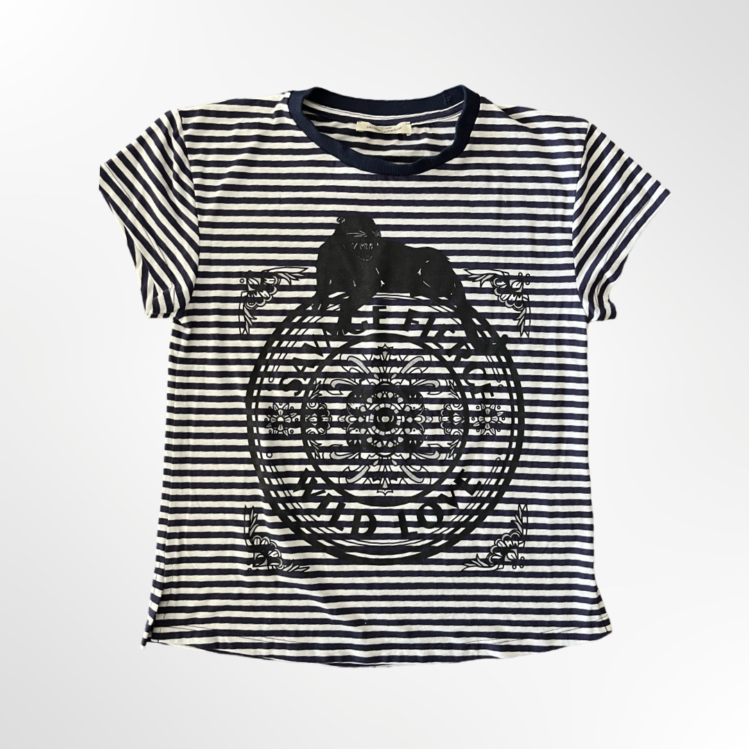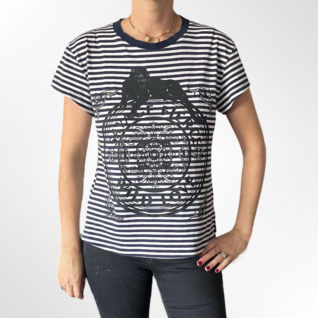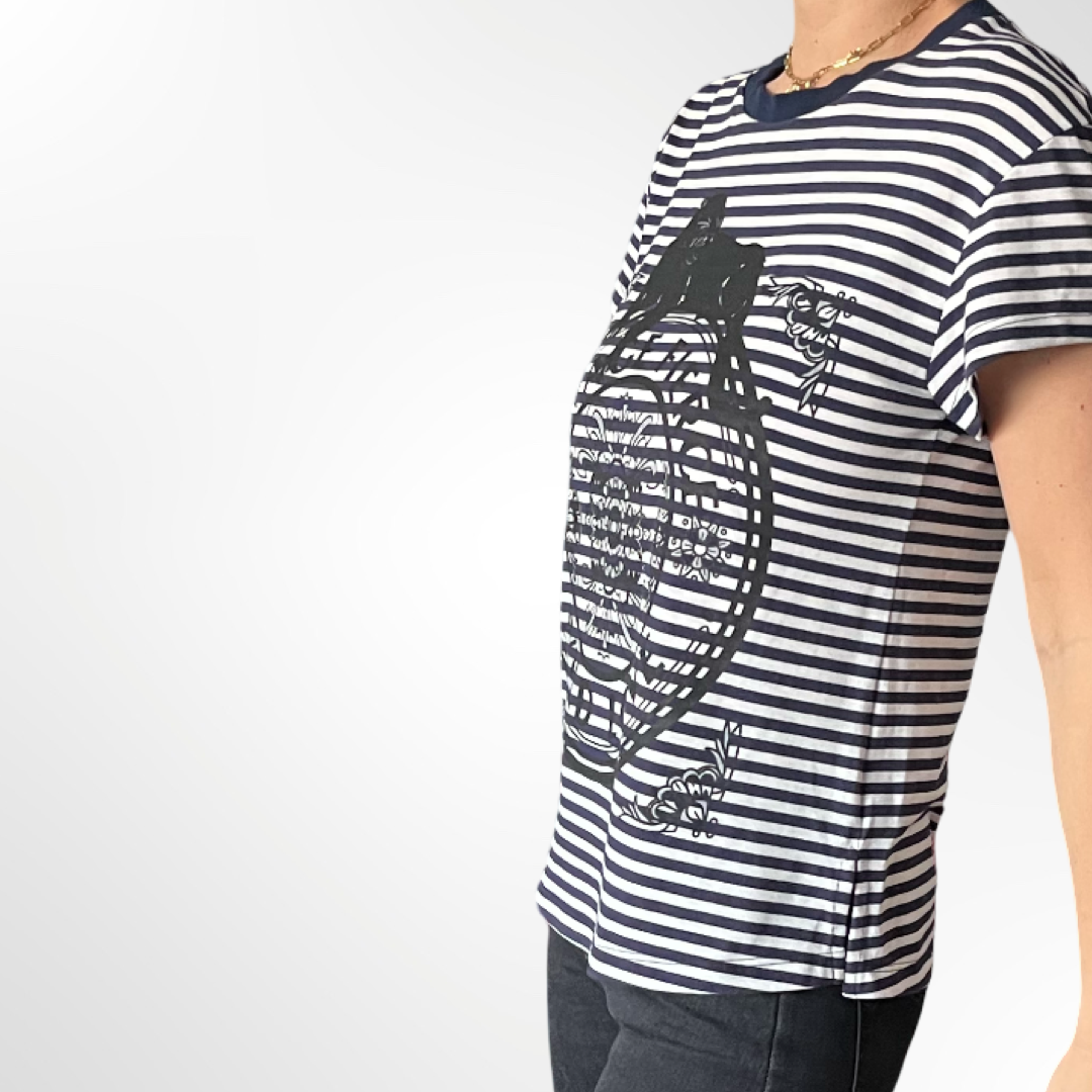 Polera de algodón a rayas azul marino.