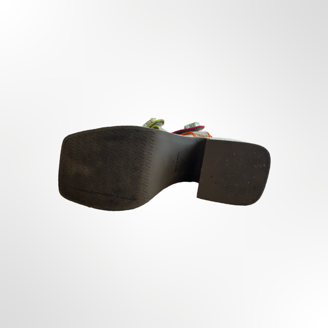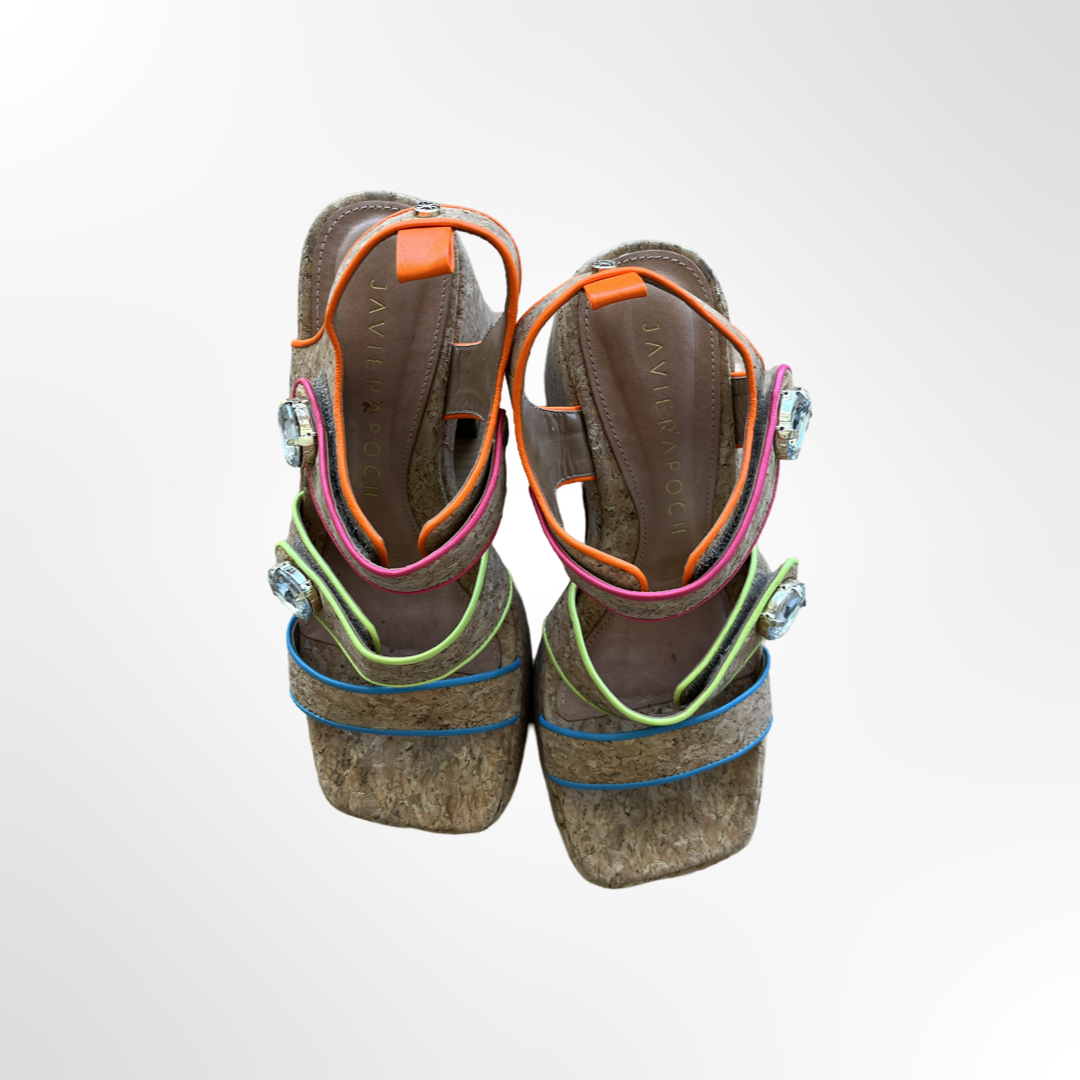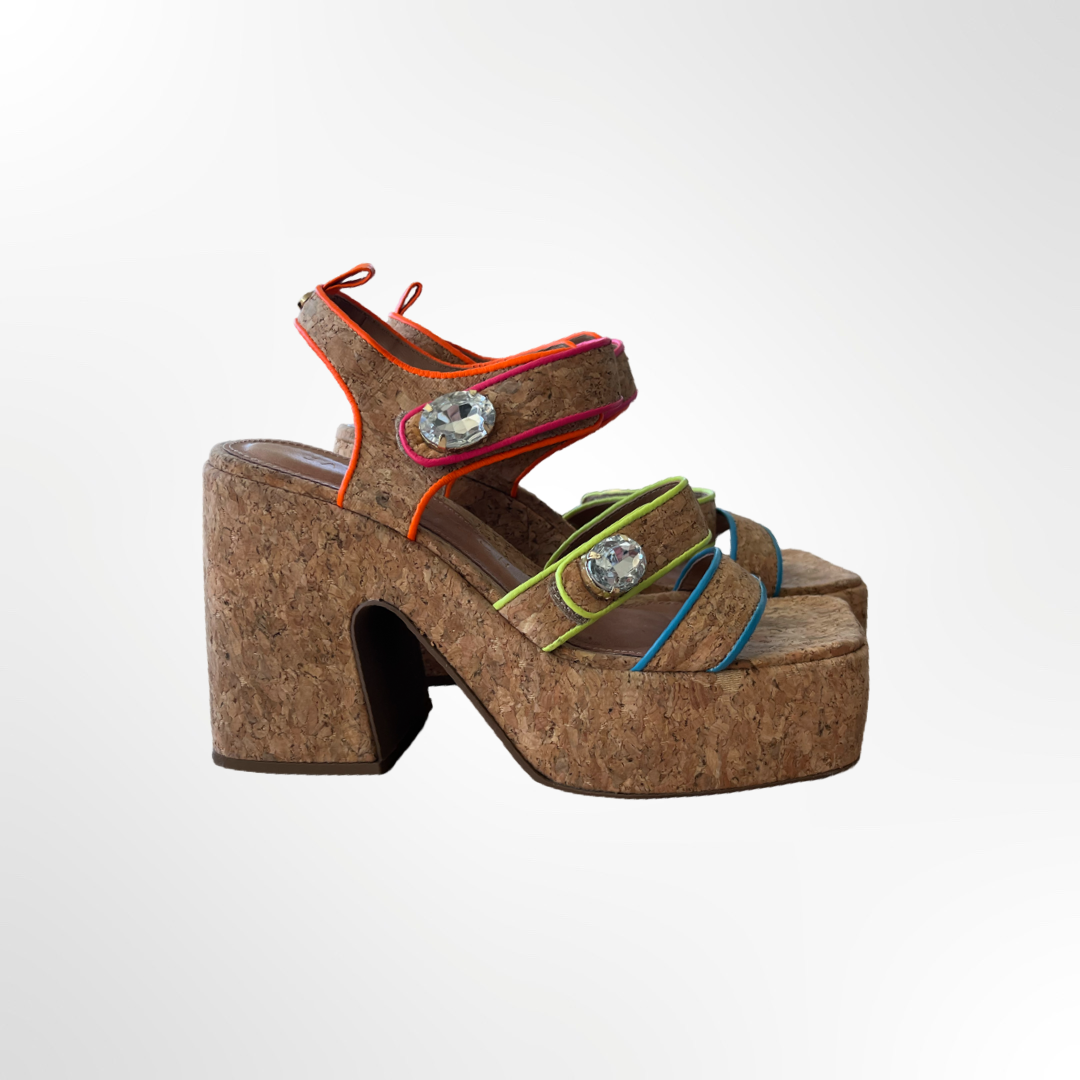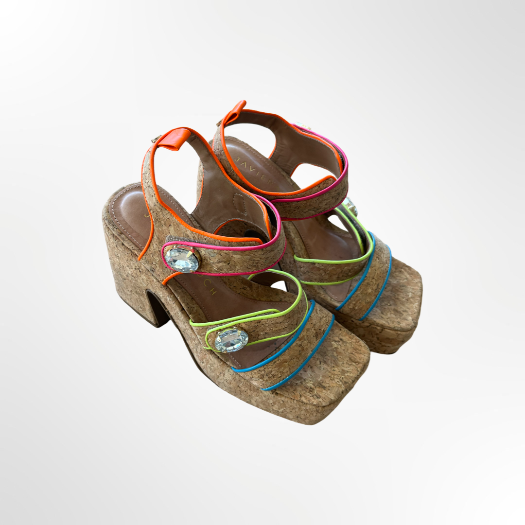 Zapato plataforma acorchado con colores neón. Taco de 11 cm y plataforma de 4 cm.