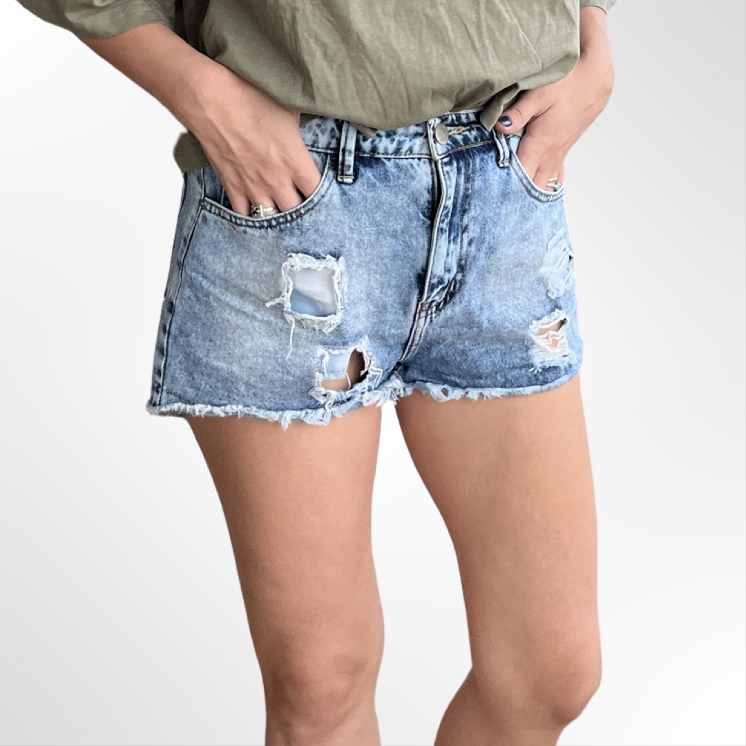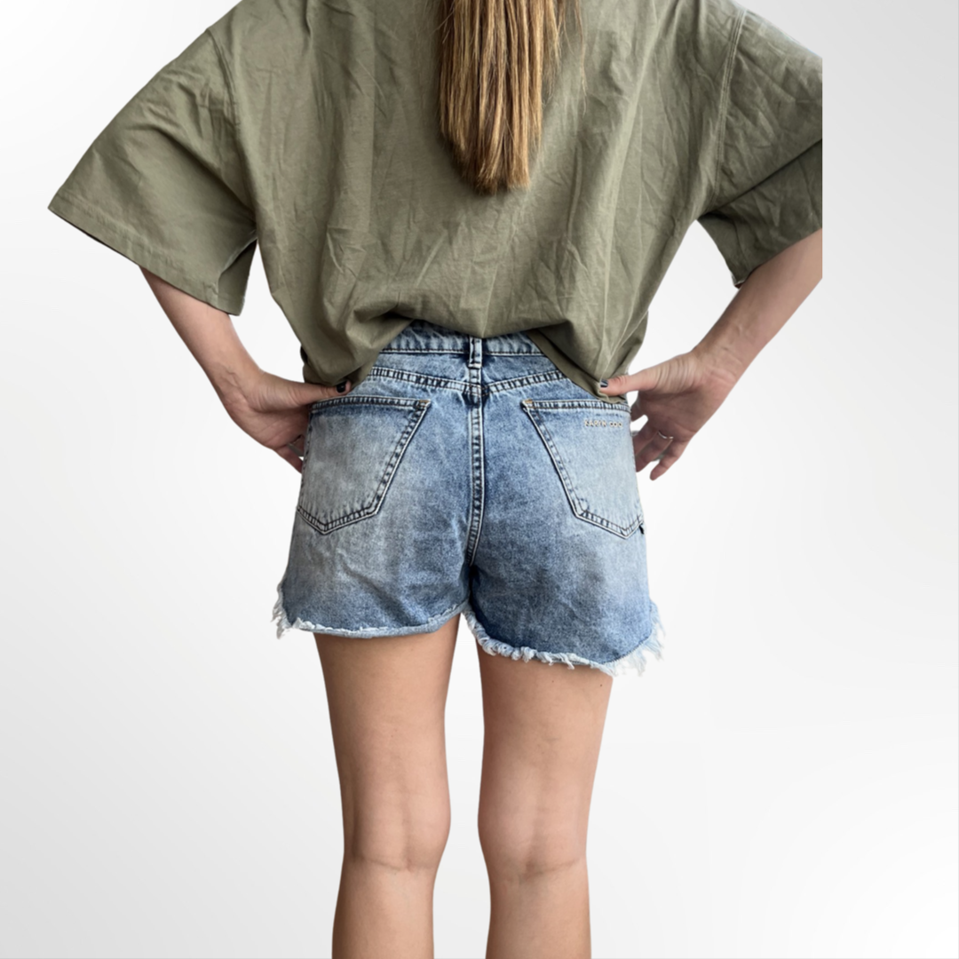 Short con aberturas rajadao, bolsillos amplios e incripción Karyn Coo en bolsillo trasero.