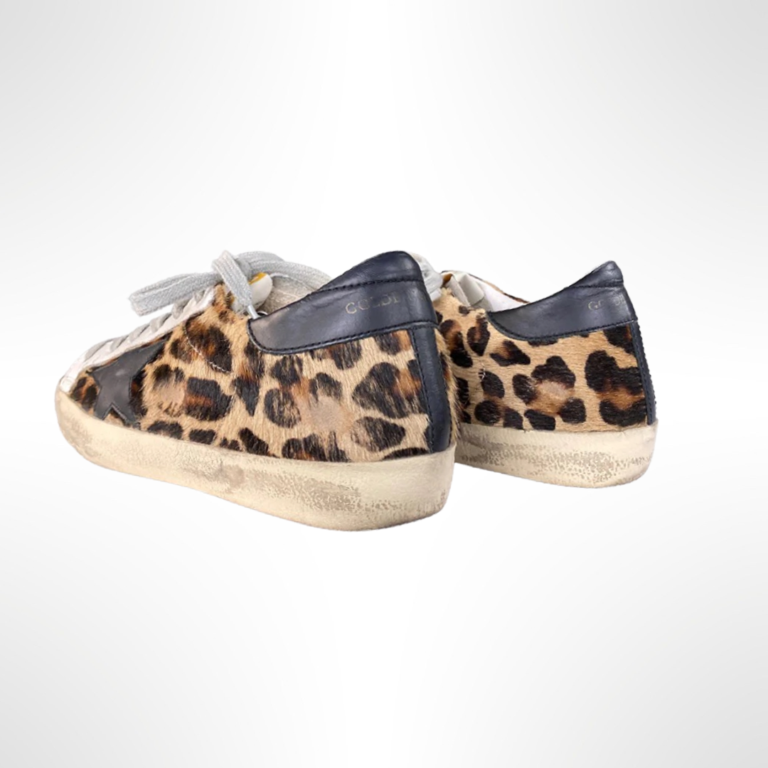 Zapatilla superstar estampado piel animal print con estrella negra. Taco interno. Tratamiento vintage