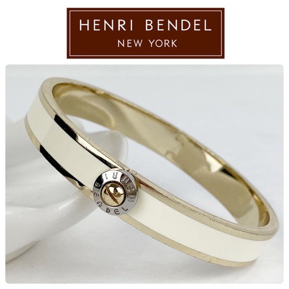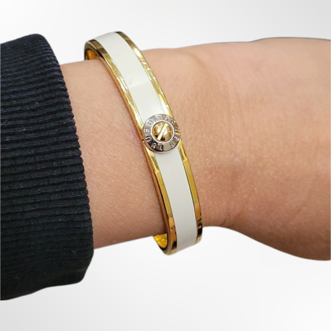 Pulsera tipo esclava en color oro rosa y blanco. Cierre a presión.