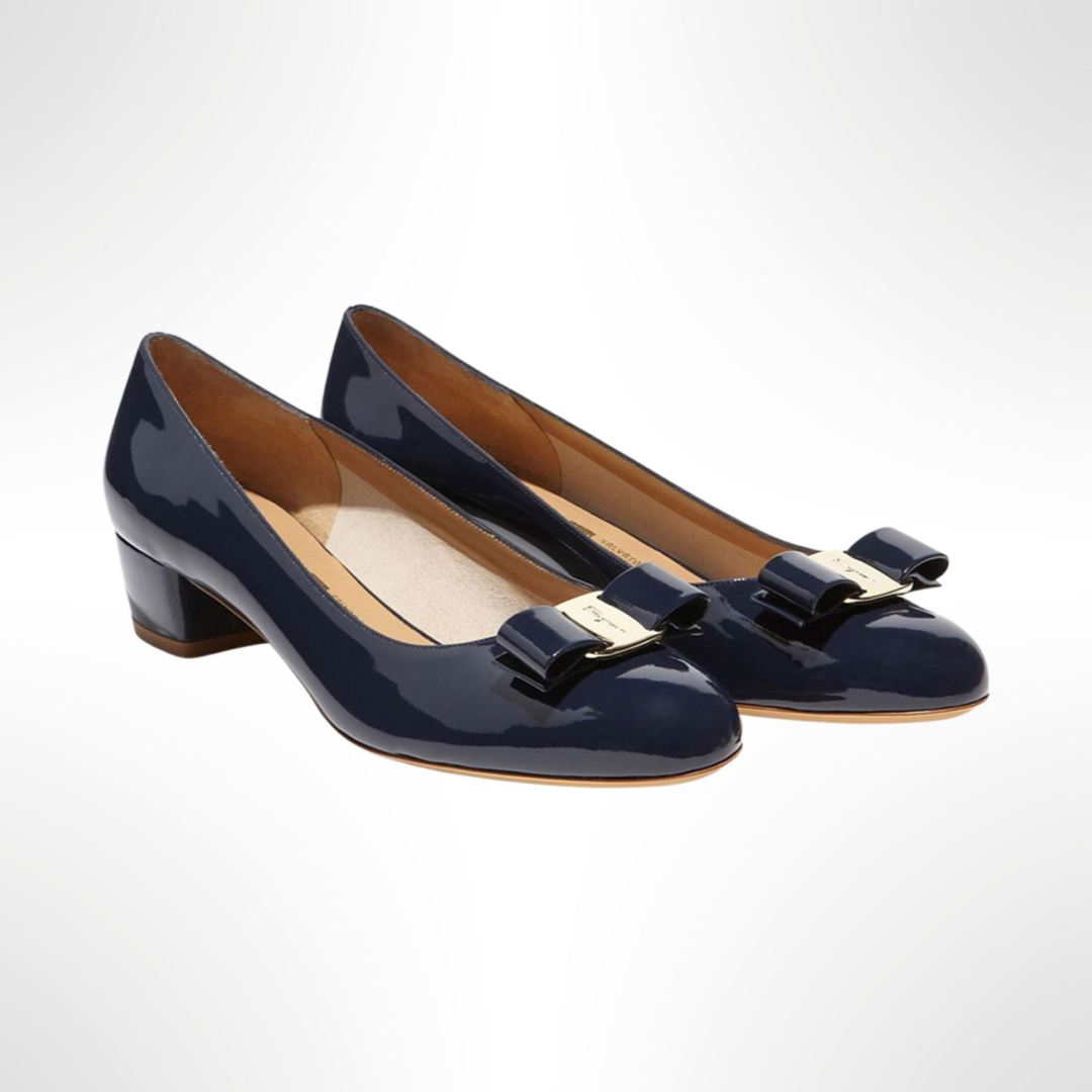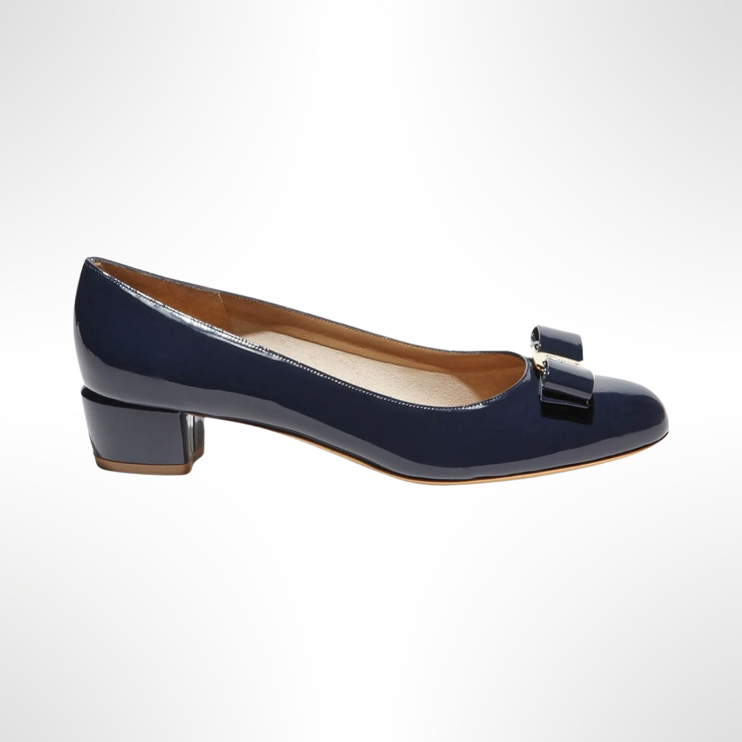 Uno de los zapatos más emblemáticos de Ferragamo, los pumps Vara tienen un lazo de cuero y un tacón apilado. Permite añadir una nota de sofisticación, con cualquier look y en cualquier temporada. Taco de 3 cm. Color azul oxford.